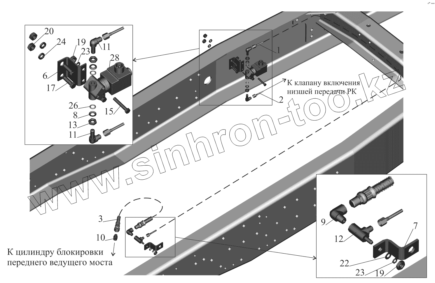 Каталог запасных частей к технике: МАЗ-530905. Установка привода управления блокировкой 530905-2300024