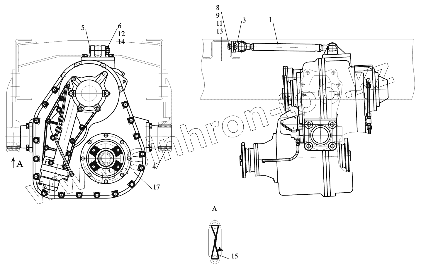 Каталог запасных частей к технике: МАЗ-530905. Установка раздаточной коробки 5309-1800008