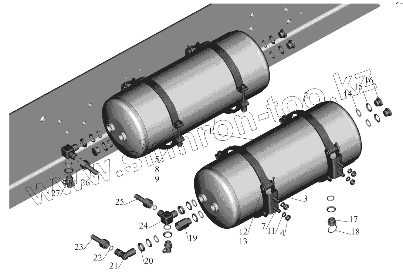 Каталог запасных частей к технике: МАЗ-530905. Установка ресиверов 530905-3513006 и присоединительной арматуры