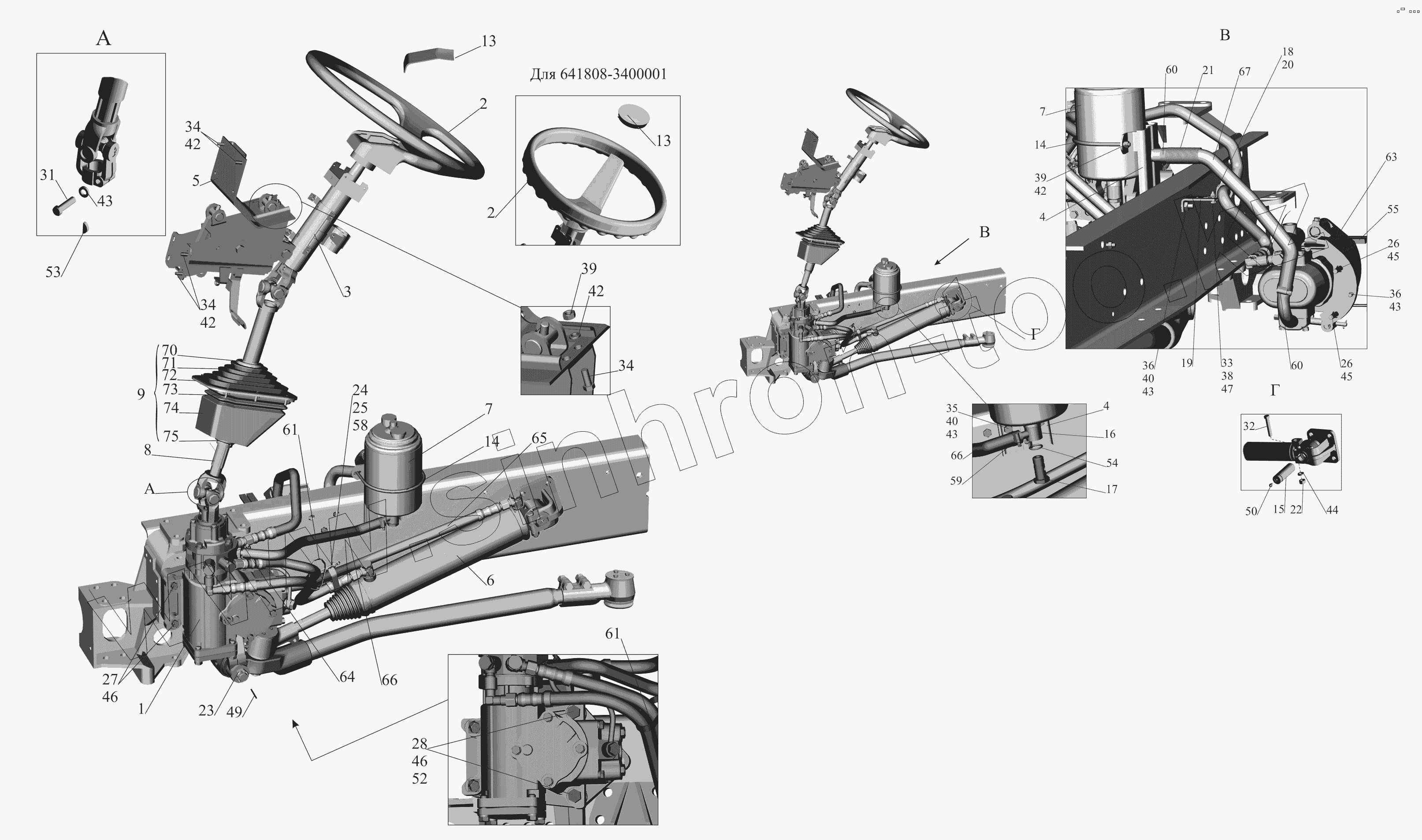 Каталог запасных частей к технике: МАЗ-530905. Установка рулевого управления 6418-3400001, 641808-3400001