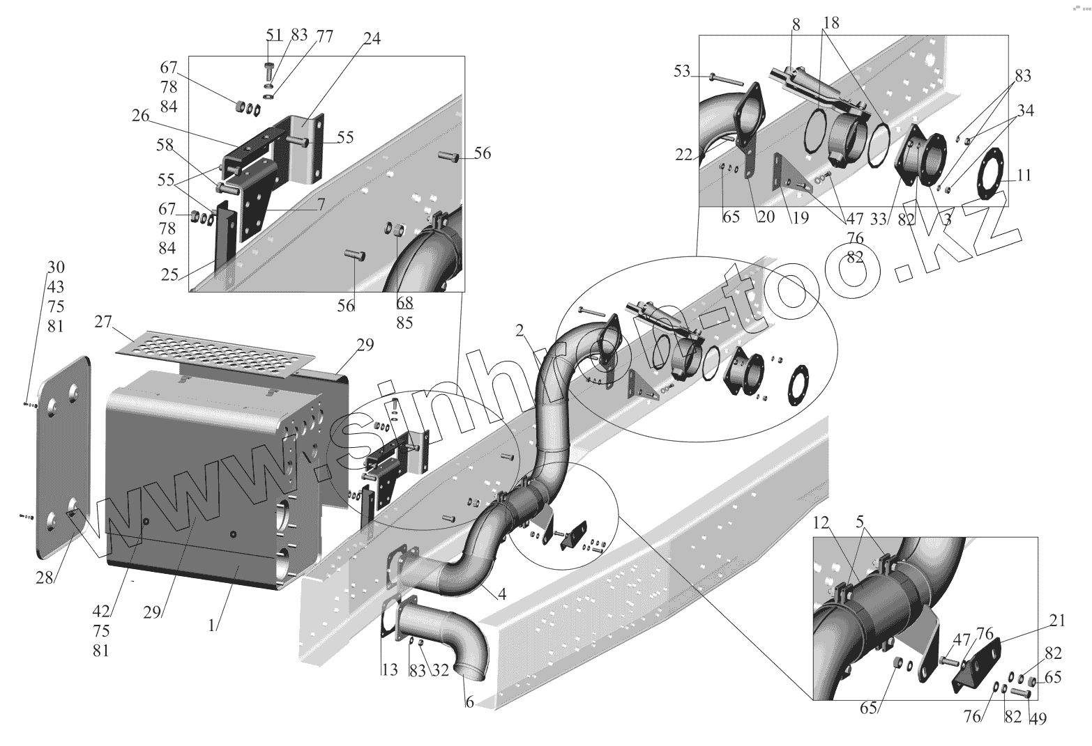 Каталог запасных частей к технике: МАЗ-530905. Установка системы выпуска 530905-1200001