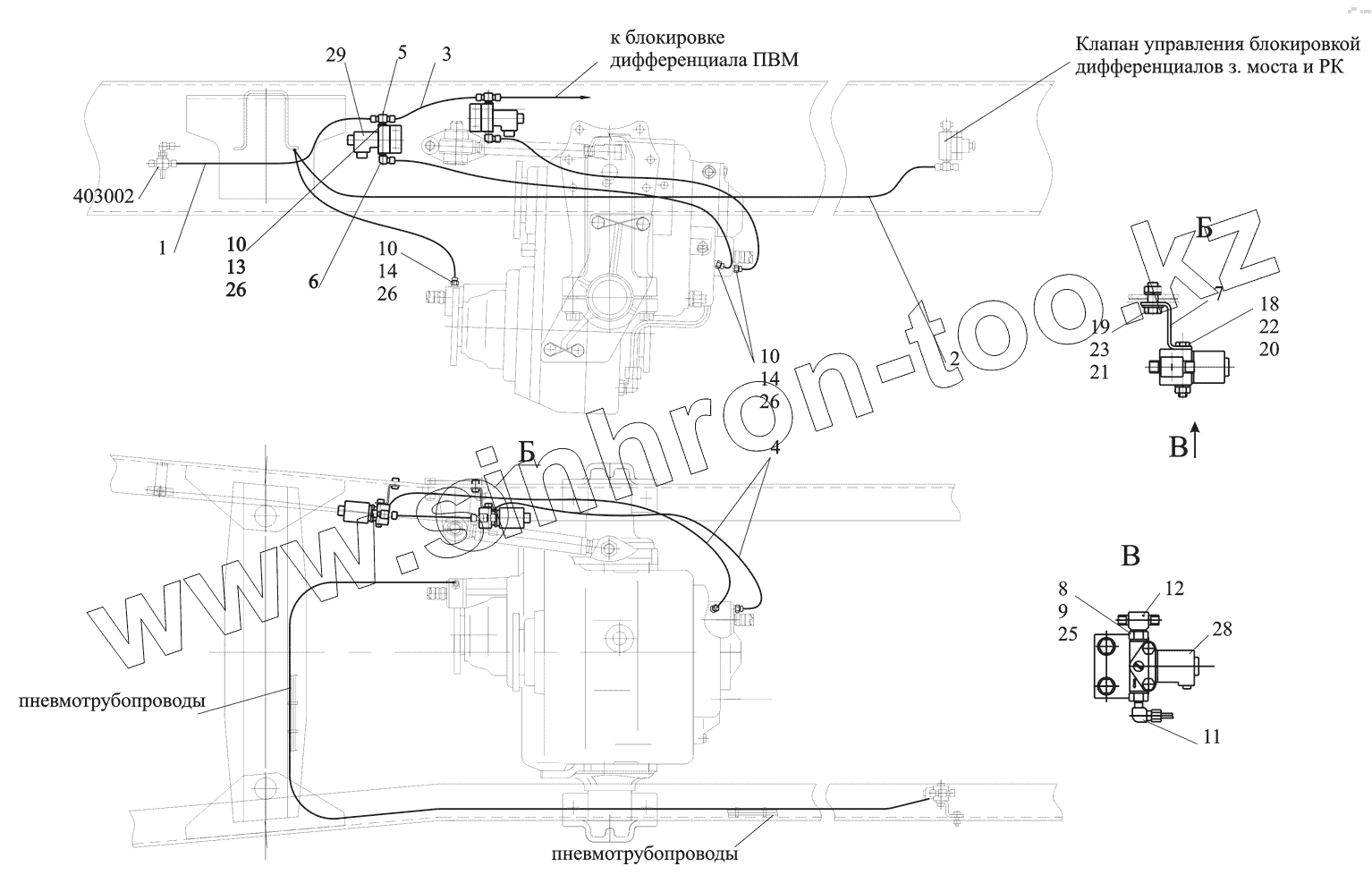 Каталог запасных частей к технике: МАЗ-530905. Установка управления раздаточной коробкой 530905-1800009