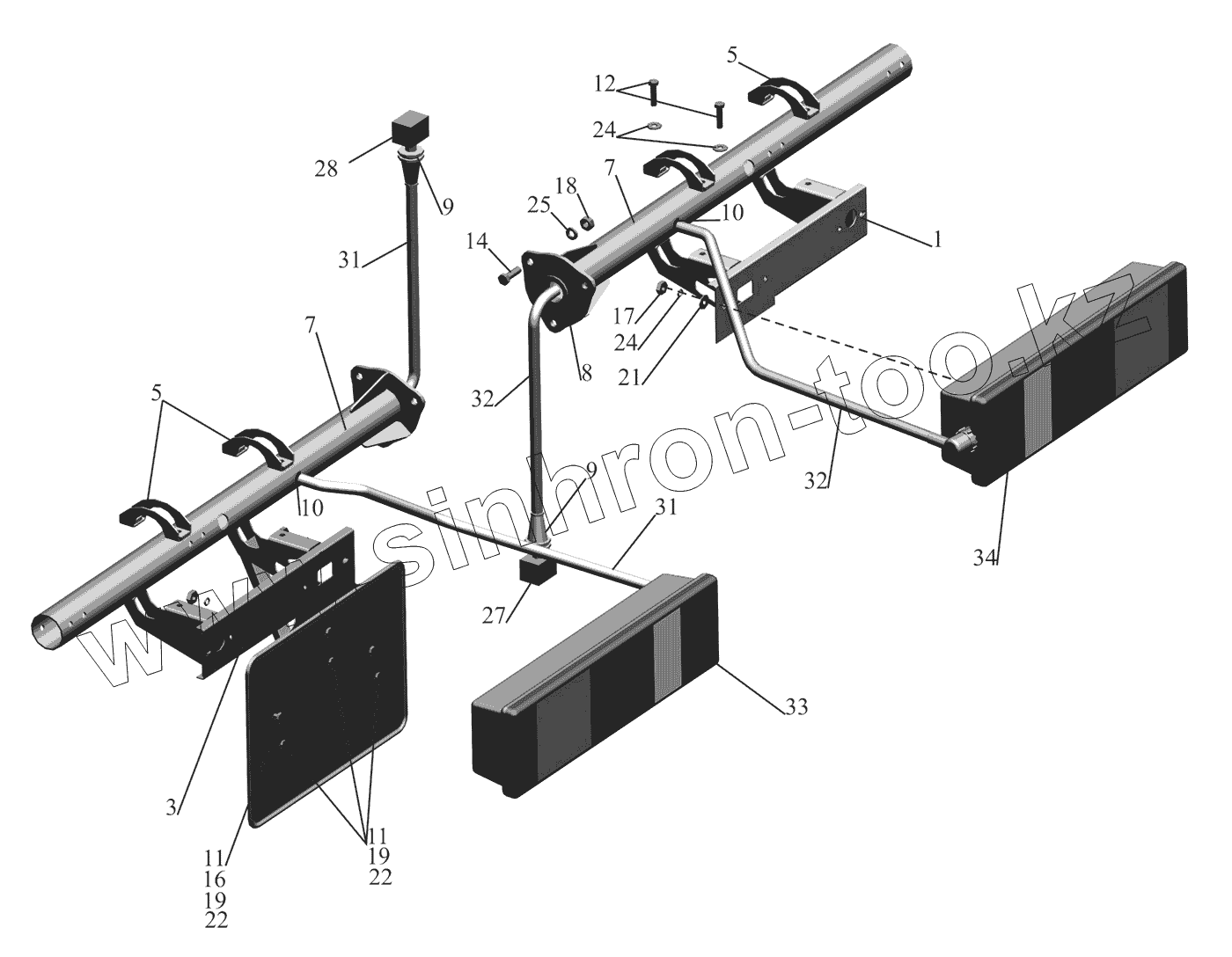 Каталог запасных частей к технике: МАЗ-530905. Установка задних фонарей 6303-3700009
