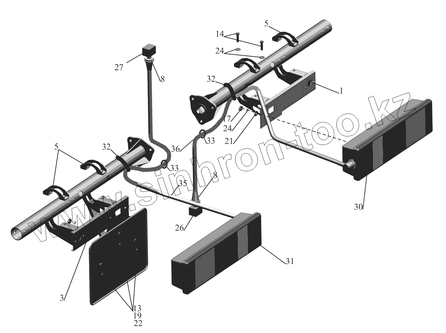Каталог запасных частей к технике: МАЗ-530905. Установка задних фонарей 6501-3700009 (-700)
