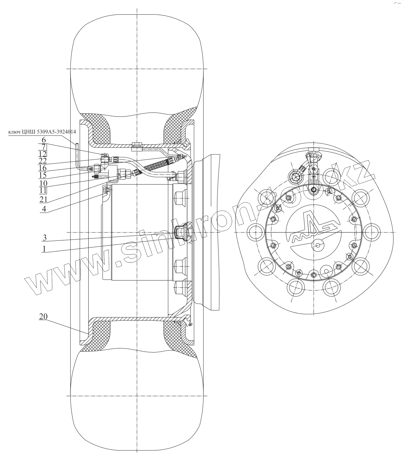 Каталог запасных частей к технике: МАЗ-530905. Установка задних колес