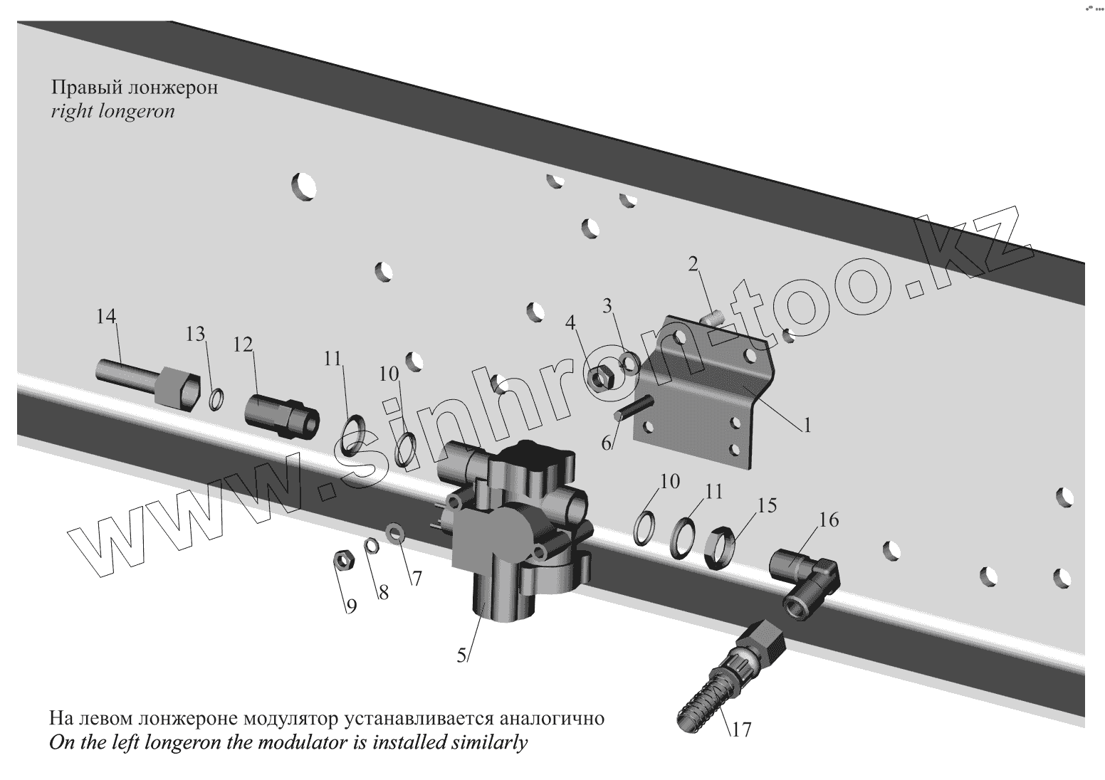 Каталог запасных частей к технике: МАЗ-530905. Установка задних модуляторов и присоединительной арматуры