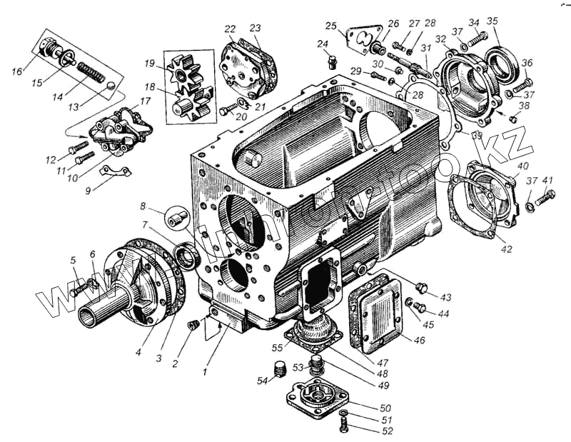 Каталог запасных частей к технике: МАЗ-5335. Картер и насос масляный коробки передач