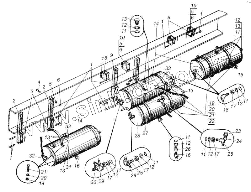 Каталог запасных частей к технике: МАЗ-5335. Крепление воздушных баллонов автомобиля МАЗ-509А