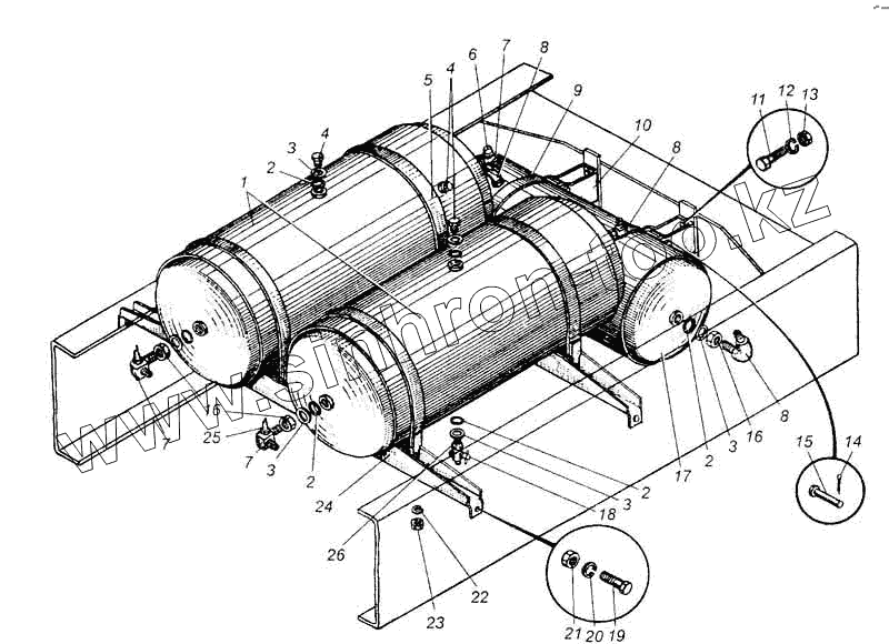 Крепление воздушных баллонов автомобиля МАЗ-5549
