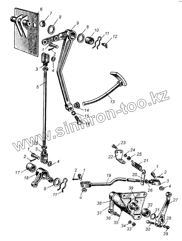 Каталог запасных частей к технике: МАЗ-5335. Привод выключения сцепления