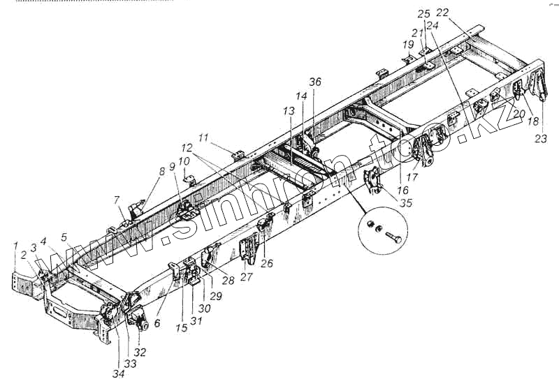 Каталог запасных частей к технике: МАЗ-5335. Рама автомобиля МАЗ-509А