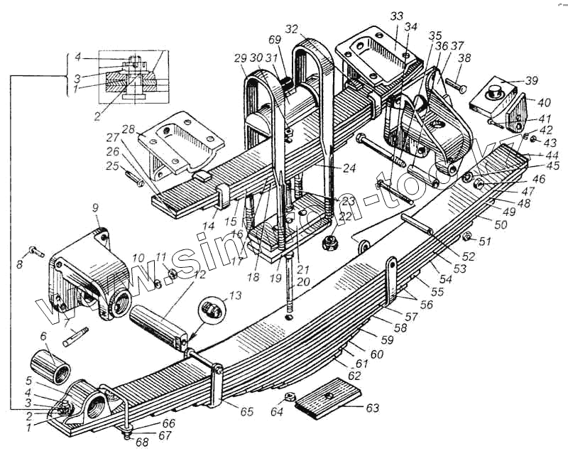 Каталог запасных частей к технике: МАЗ-5335. Рессора задняя