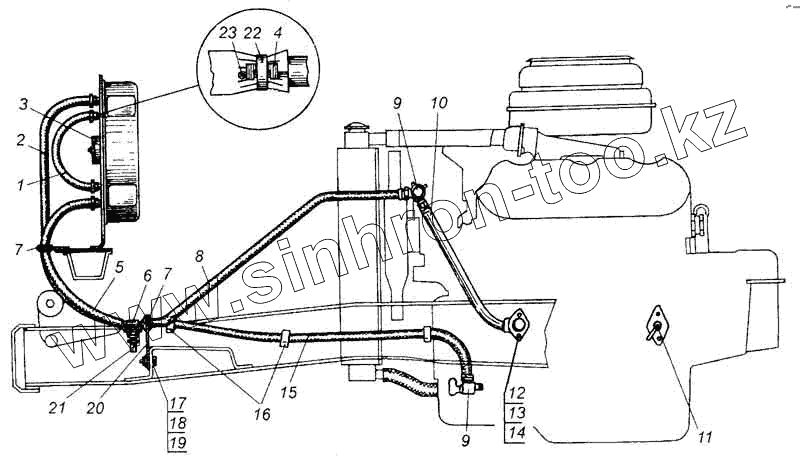 Каталог запасных частей к технике: МАЗ-5335. Схема вентиляции и отопления кабины