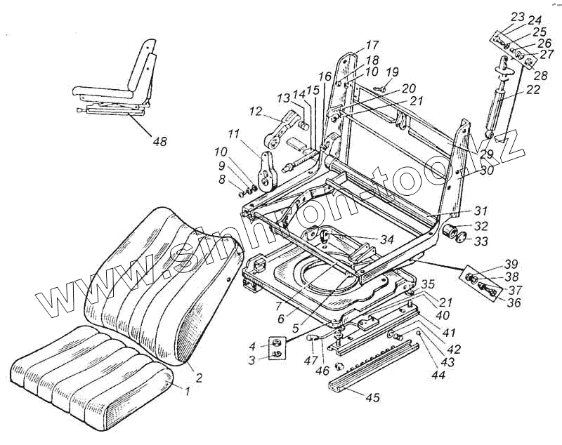 Каталог запасных частей к технике: МАЗ-5335. Сиденье водителя