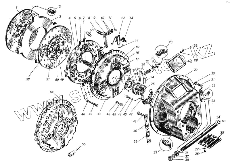 Каталог запасных частей к технике: МАЗ-5335. Сцепление ЯМЗ-236К