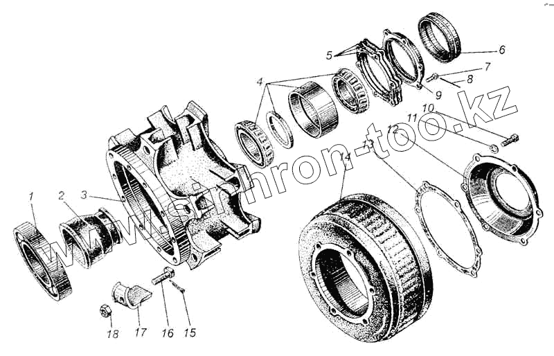 Каталог запасных частей к технике: МАЗ-5335. Ступица и тормозной барабан заднего колеса
