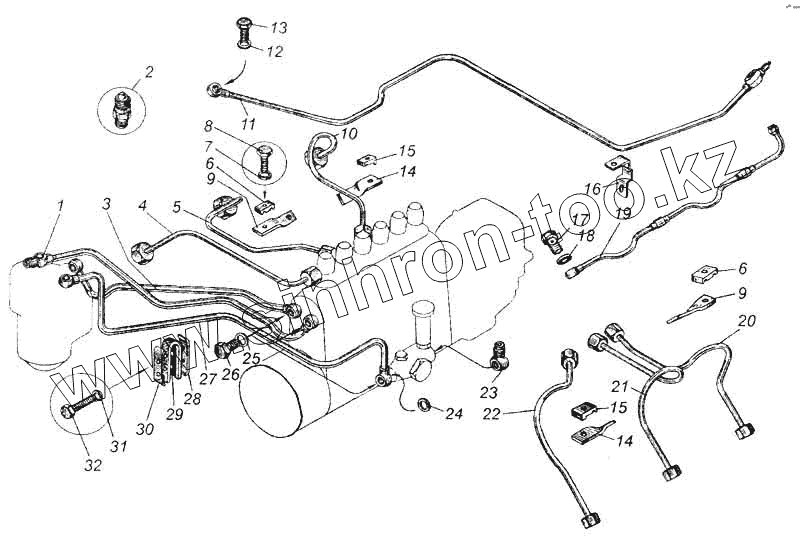 Каталог запасных частей к технике: МАЗ-5335. Топливные трубопроводы двигателя ЯМЗ-236