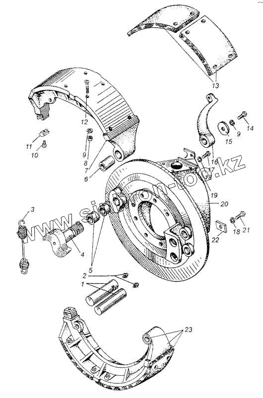 Каталог запасных частей к технике: МАЗ-5335. Тормоз рабочий передний автомобиля МАЗ-509А