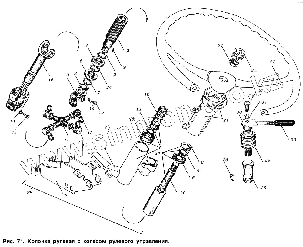 Каталог запасных частей к технике: МАЗ-53363. Колонка рулевая с колесом рулевого управления