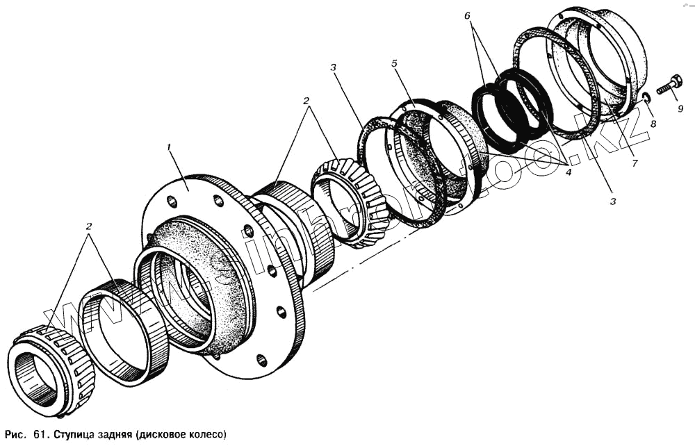 Каталог запасных частей к технике: МАЗ-53363. Ступица задняя (дисковое колесо)