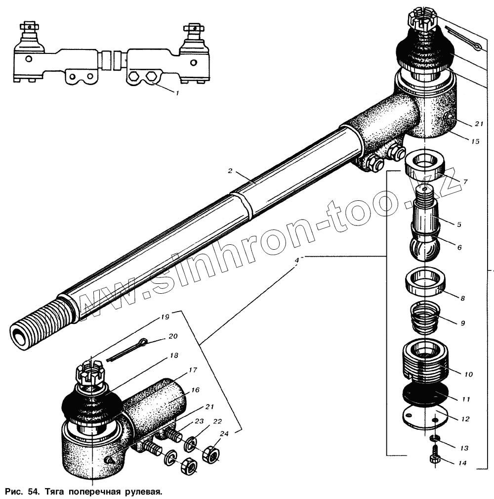 Каталог запасных частей к технике: МАЗ-53363. Тяга поперечная рулевая