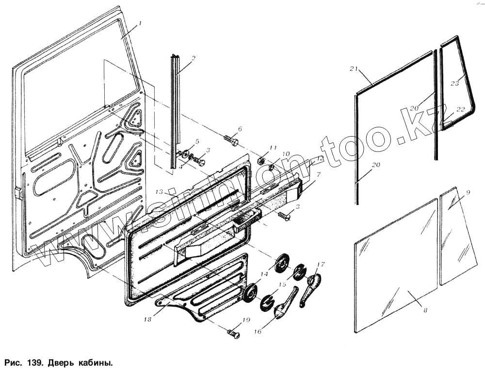 Каталог запасных частей к технике: МАЗ-53366. Дверь кабины