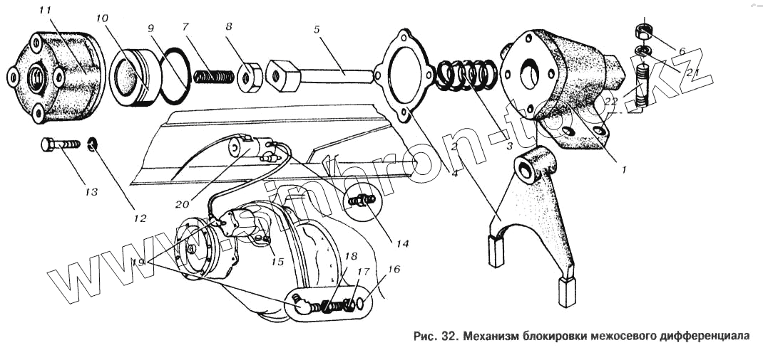 Каталог запасных частей к технике: МАЗ-53366. Механизм блокировки межосевого дифференциала