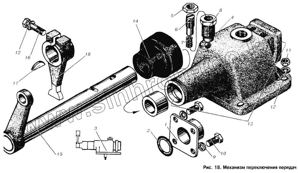 Каталог запасных частей к технике: МАЗ-53366. Механизм переключения передач