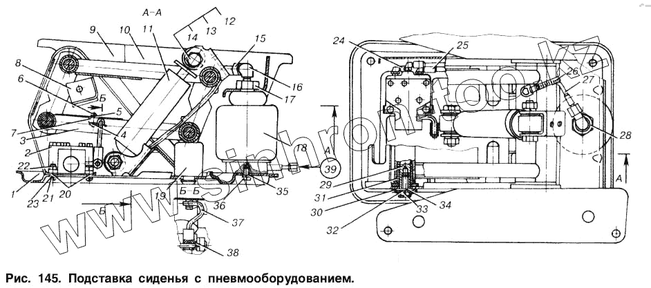 Каталог запасных частей к технике: МАЗ-53366. Подставка сиденья с пневмооборудованием