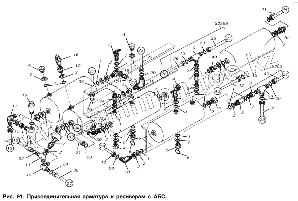 Каталог запасных частей к технике: МАЗ-53366. Присоединительная арматура к ресиверам с АБС