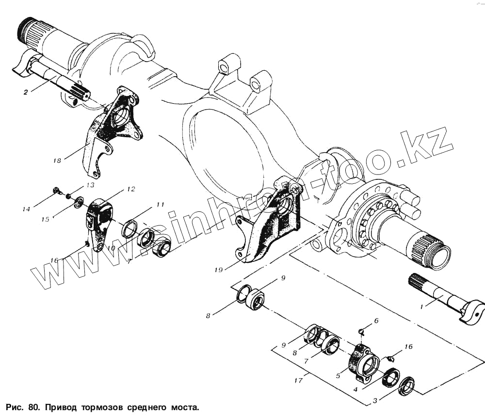 Каталог запасных частей к технике: МАЗ-53366. Привод тормозов среднего моста