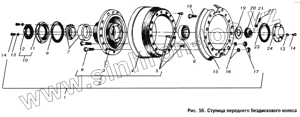 Каталог запасных частей к технике: МАЗ-53366. Ступица переднего бездискового колеса