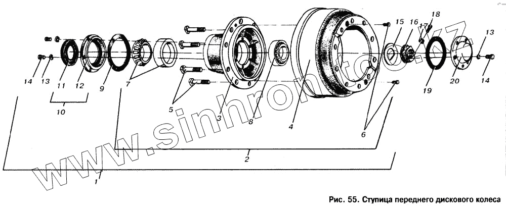 Каталог запасных частей к технике: МАЗ-53366. Ступица переднего дискового колеса