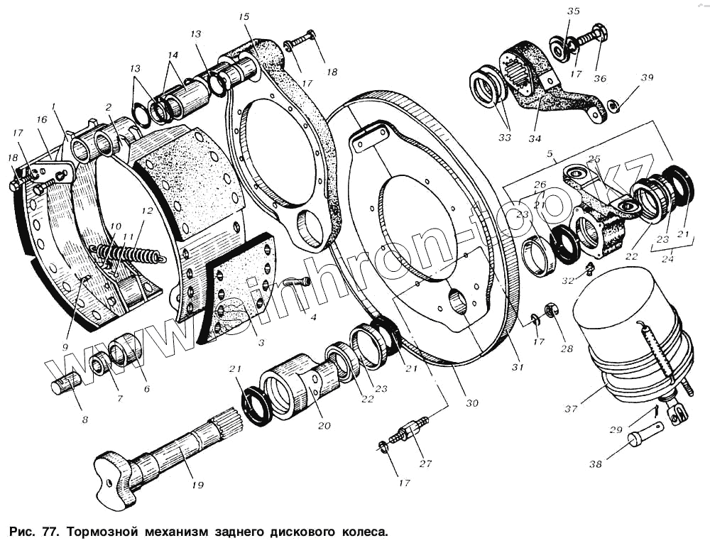 Каталог запасных частей к технике: МАЗ-53366. Тормозной механизм заднего дискового колеса