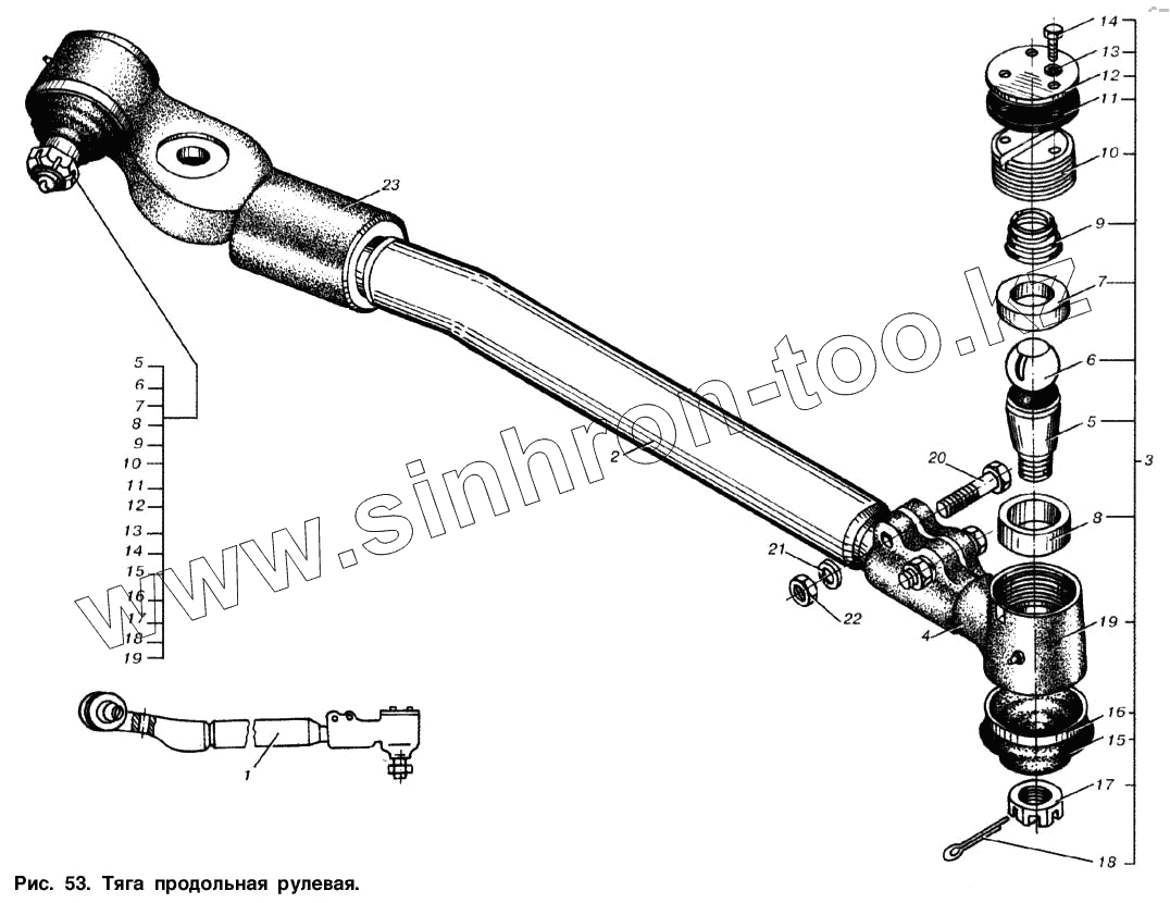 Каталог запасных частей к технике: МАЗ-53366. Тяга продольная рулевая