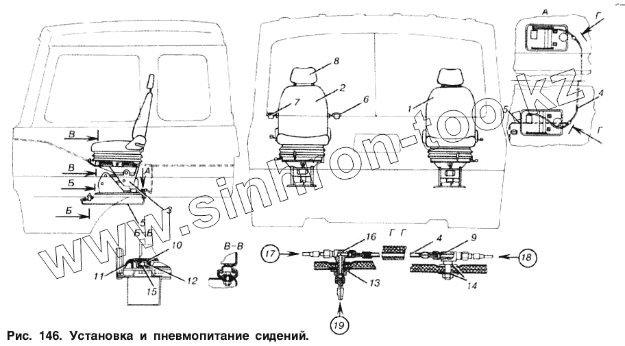 Каталог запасных частей к технике: МАЗ-53366. Установка и пневмопитание сидений