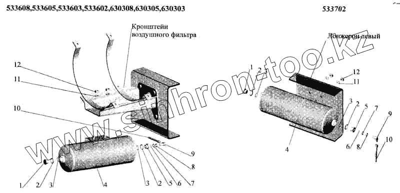 Установка ресивера и присоединительной арматуры на МАЗ-533608, МАЗ-533605, МАЗ-533603, МАЗ-533602, МАЗ-630308