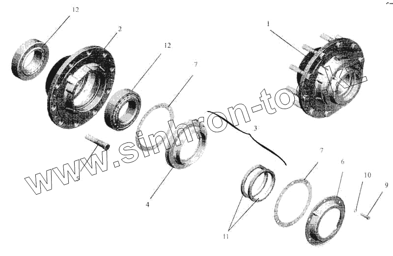 Каталог запасных частей к технике: МАЗ-5336. Ступица среднего моста