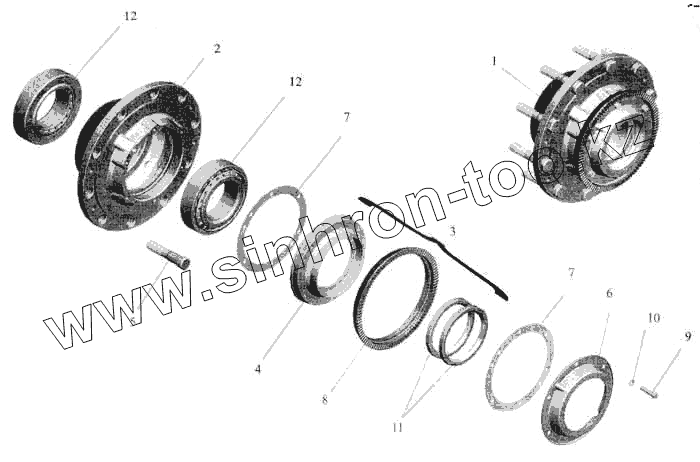 Каталог запасных частей к технике: МАЗ-5336. Ступица заднего моста