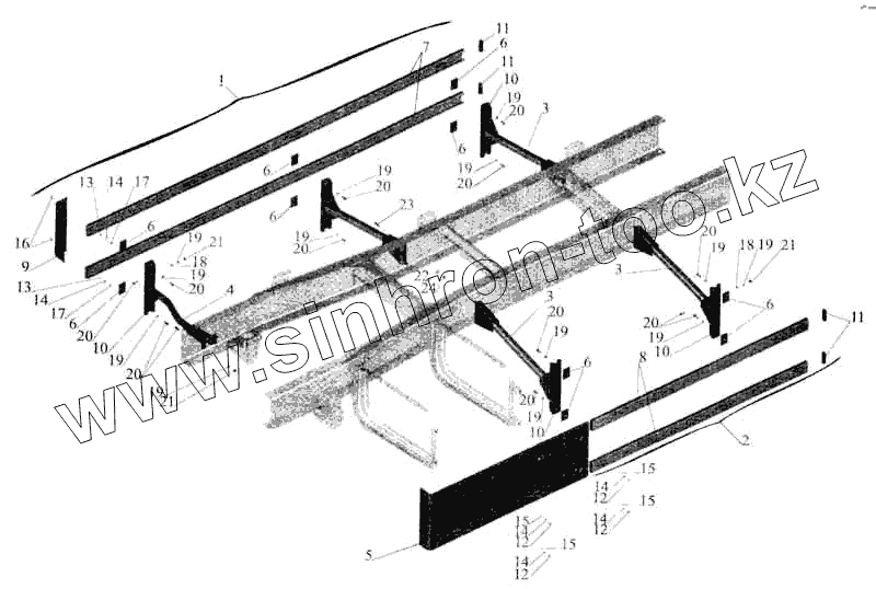 Каталог запасных частей к технике: МАЗ-5336. Установка бокового ограждения 630308-2800040-010