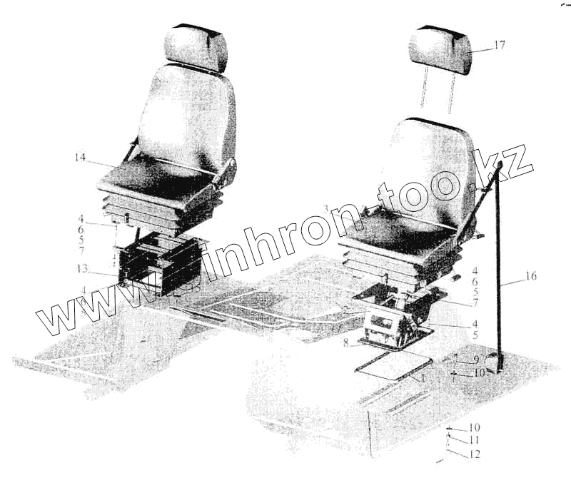 Каталог запасных частей к технике: МАЗ-5336. Установка и пневмопитание сидений