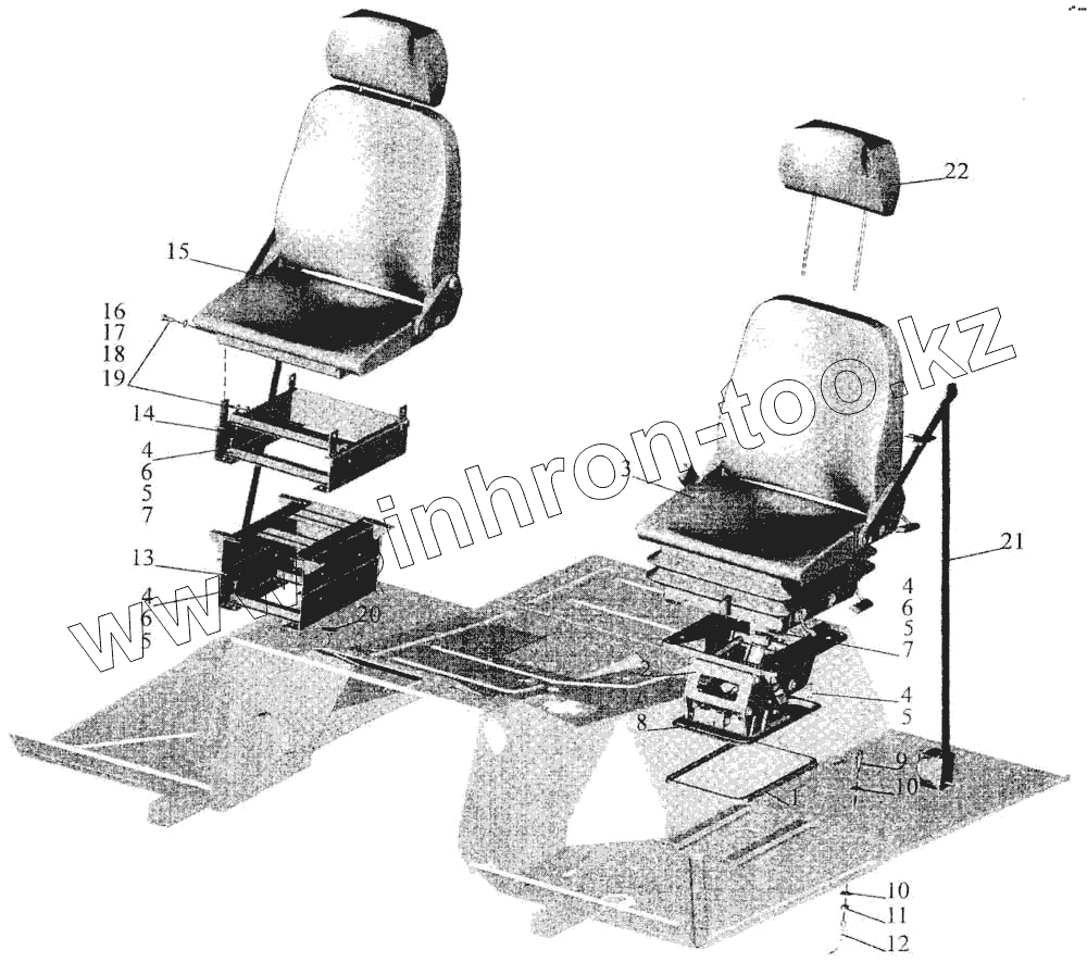 Установка и пневмопитание сидений автомобиля МАЗ-533702