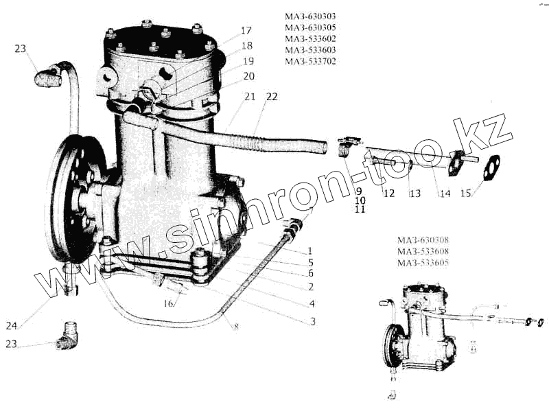 Каталог запасных частей к технике: МАЗ-5336. Установка пневмокомпрессора