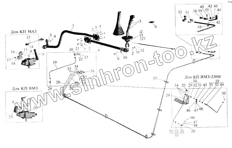 Каталог запасных частей к технике: МАЗ-5336. Установка привода управления коробкой передач
