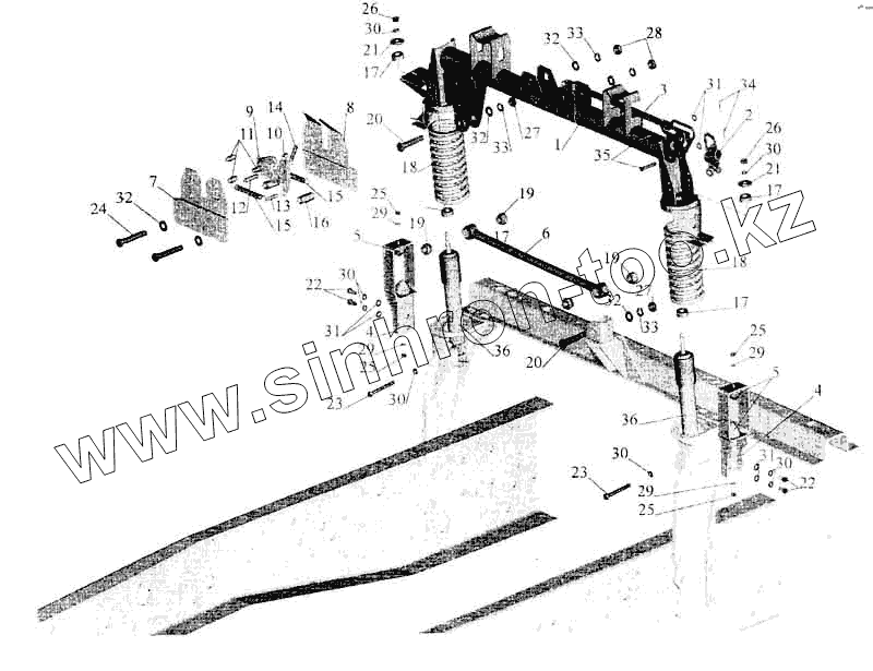 Каталог запасных частей к технике: МАЗ-5336. Заднее подрессоривание большой кабины
