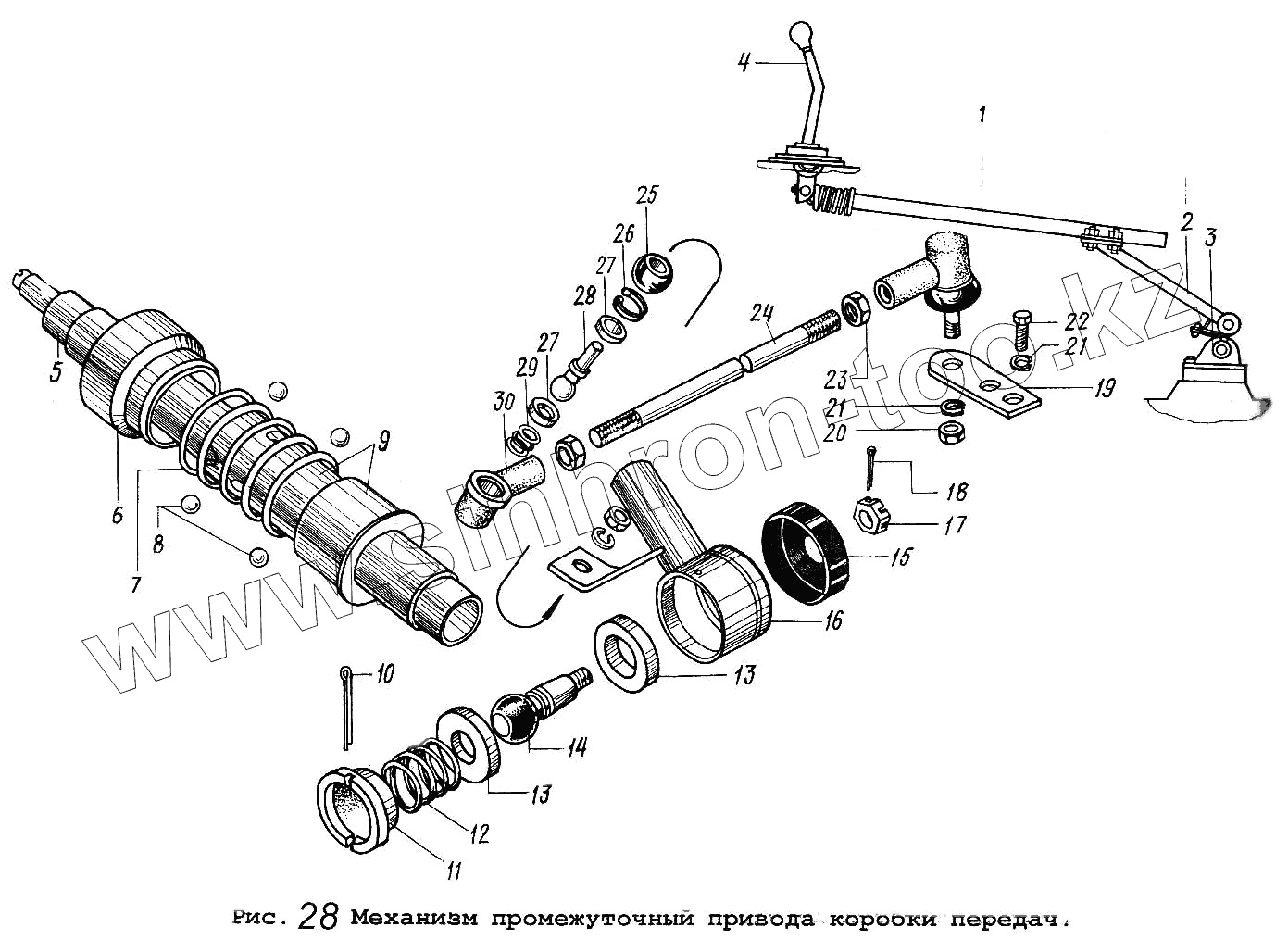 Каталог запасных частей к технике: МАЗ-53371. Механизм промежуточный привода коробки передач