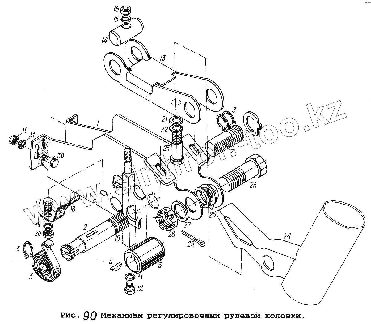 Каталог запасных частей к технике: МАЗ-53371. Механизм регулировочный рулевой колонки