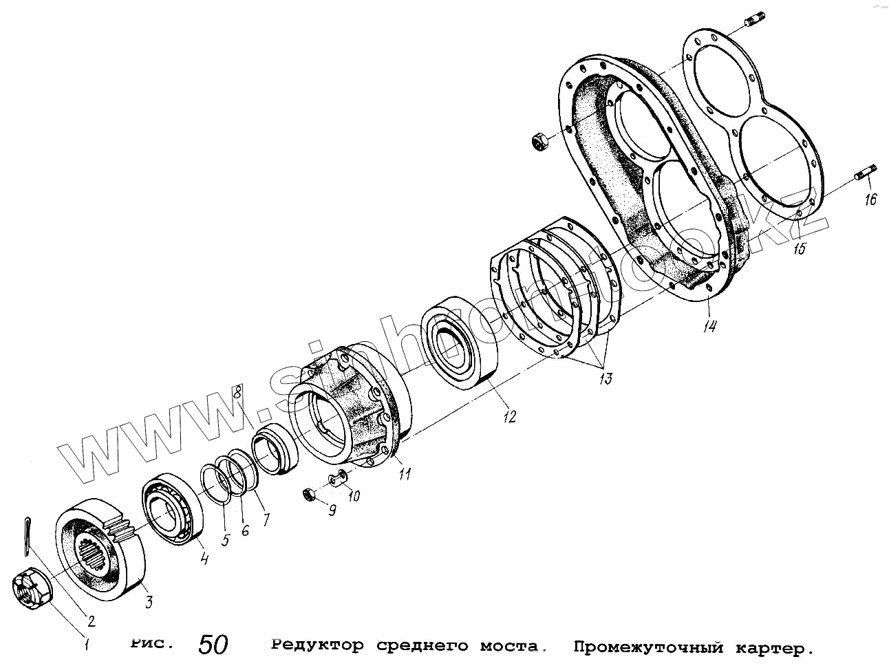 Каталог запасных частей к технике: МАЗ-53371. Редуктор среднего моста. Промежуточный картер