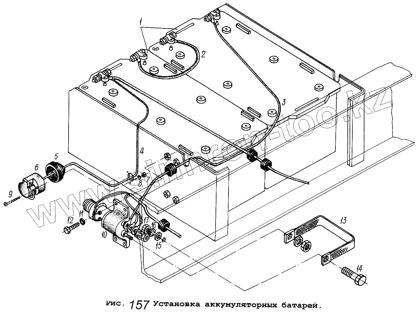 Каталог запасных частей к технике: МАЗ-53371. Установка аккумуляторных батарей