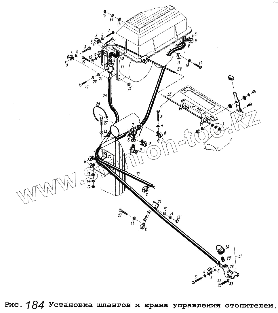 Каталог запасных частей к технике: МАЗ-53371. Установка шлангов и крана управления отопителем